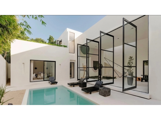 high-end contemporary home in Aldea Zama, Tulum, designed for homeowners who want light, privacy, and a seamless connection to the outdoors. Thoughtful geometry, oversized glass, and generous ceiling heights give the villa a calm, gallery-like feel while still being comfortable for everyday living.
